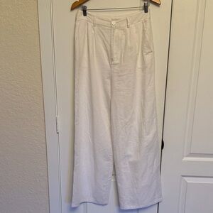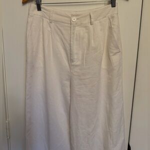 Excellent condition. No flaws Chic wide-leg pants in crisp white. Perfect for versatile styling. Comfortable and stylish. Self: 55% cotton, 45% linen