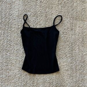 Chic black tank top from Garage. Ideal for layering or wearing alone. Perfect for casual outings. Small Tear on side seam near underarm/strap area (shown in photos)