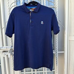 Robert Graham Embroidered Skull with Rose Navy Cotton Polo Shirt Men Size Large