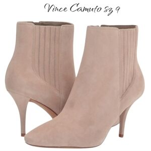 Vince Camuto Ambind Almond Beige Suede Pointed Toe Stiletto Ankle Booties Sz 9