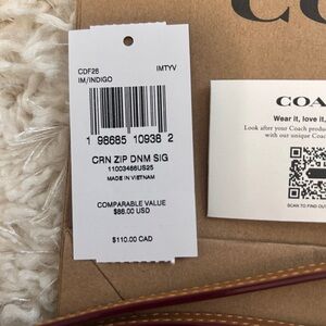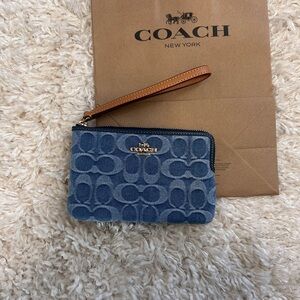 NWT❣️Coach Corner Zip Wristlet in Signature Denim Wallet Card Holder Case Blue