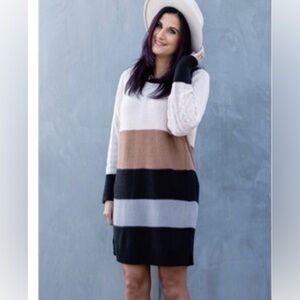LuLaRoe Lauren Gray, Tan, Black and White Striped Dress size XS