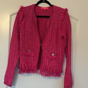 Lilly Pulitzer Pink Tweed-like Fringe Cardigan