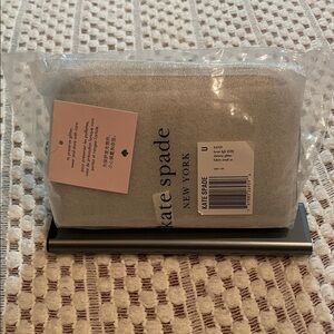 Chic silver cosmetic bag by Kate Spade. Ideal for organizing essentials, makeup, pens, pencils, anything you need!
