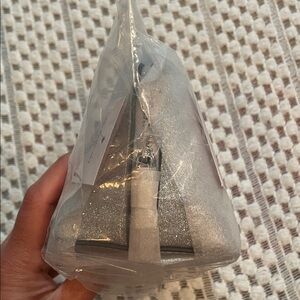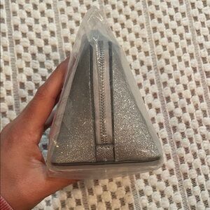 NWT Kate Spade Shimmy Glitter Small Cosmetic Case (Lunar Light Silver