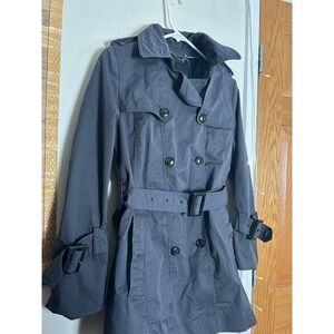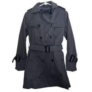 Banana Republic Trench Coat Dark Grey Petite S Preppy Tie Waist Belted