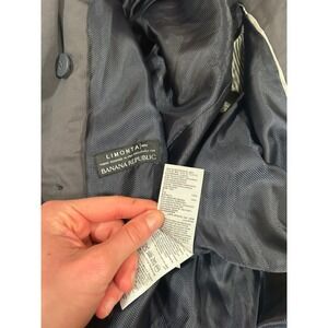 Banana Republic double-breasted trench coat in a versatile dark charcoal grey, crafted from premium Limonta fabric designed in Italy. This sophisticated outerwear piece features classic trench details including epaulettes at the shoulders, a storm flap at the back, and adjustable buckled cuffs. The waist is defined by a matching removable belt with a black buckle, and the interior is fully lined for a smooth fit. Designed with a petite-specific cut, it offers a polished silhouette perfect for professional or elevated casual wear.