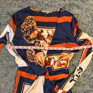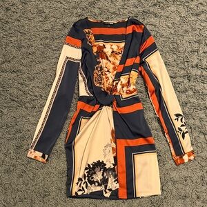 Fashion Nova Lotta Class Navy and Orange Long Sleeve Dress| Size Small