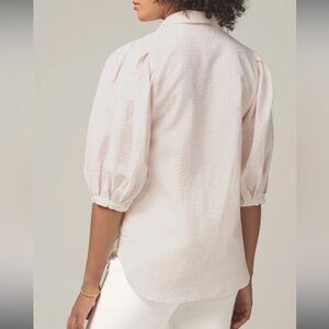 Citizens Of Humanity Ines Pleat Half Sleeve Shirt in Flora Stripe Medium