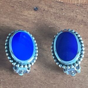 Vintage 925 Sterling Silver Blue Lapis Clip-on Earrings