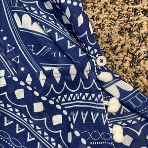 VENUS Bohemian Blue and White Pom Pom Patterned Swim Cover Up Size 1X | NWOT