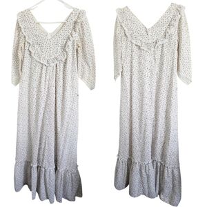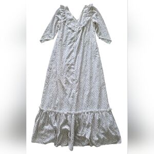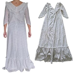 VTG 80s Carol Bennett White Ditsy Floral Hawaiian Muumuu Maxi Dress S/M Cottage