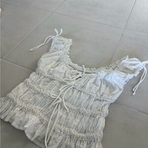 Elevate your style with this elegant white ruffled top. Perfect for any occasion, it offers a chic and comfortable fit.