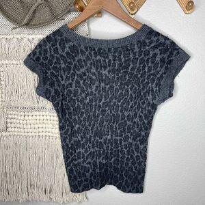 Cache Grey Leopard V-Neck Sweater Top size XS. Great condition. Light fuzzies, but can easily be removed or shaved. Stretchy. Cute to wear alone as a top or over a collared long sleeve.