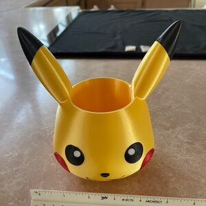 Cute yellow Pikachu planter with red cheeks and black accents. Perfect for small plants or decor.