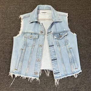 Umgee Denim Vest Womens Small Blue Light Wash Sleeveless Frayed Hem Button Front.