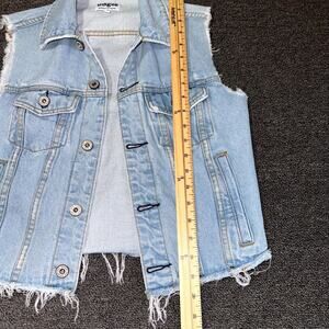 Umgee Denim Vest Womens Small Blue Light Wash Sleeveless Frayed Hem Button Front