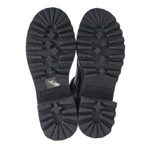 DKNY Basia combat boots combine edgy industrial style with a sophisticated metallic finish. These boots feature a crackled silver leather upper with distinctive quilted panels and a wide buckled ankle strap for a secure, layered look. Designed with both a lace-up front and a convenient side zipper, they offer a customizable fit and easy entry. The chunky lug sole and modest block heel provide a sturdy foundation, while the tonal hardware and sleek silhouette make them a versatile choice for elevating casual or streetwear ensembles.