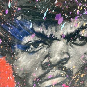 Add a splash of color to your space with this vibrant abstract portrait art print. Featuring bold red, purple, and black hues, this piece is perfect for modern art enthusiasts.