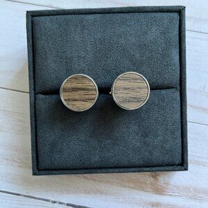 Men’s Round Wood Inlay Cufflinks Silver Tone Classic Formal