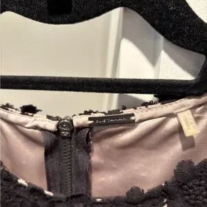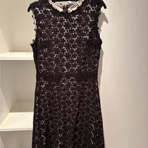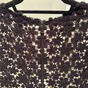 Chic black lace a-line silhouette with floral pattern. Very good minimal wear. Knee length. Perfect for elegant outings.