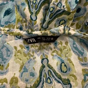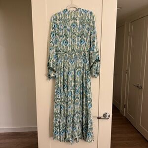 Zara Blue and Green Long Sleeve Maxi Dress