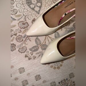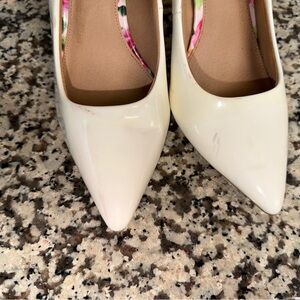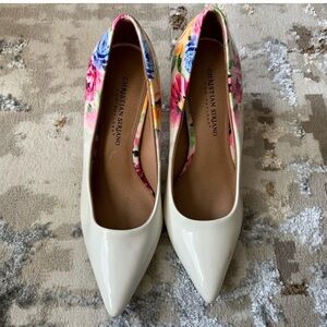 Chic cream heels with vibrant floral accents. Perfect for a stylish look. Please check the foto for details