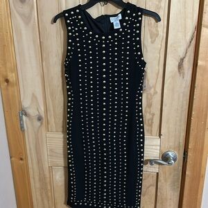 Excellent Like New Condition Lined, Gold Studded Black Dress