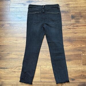 Free People Payton Studded Skinny Jean Black Raw Hem Ripped Knee Ankle Length