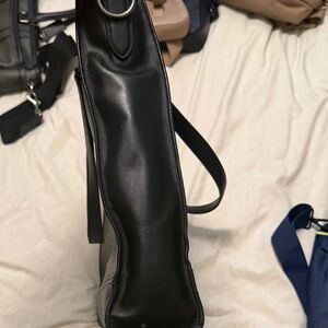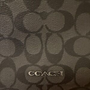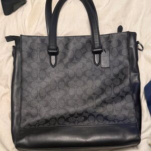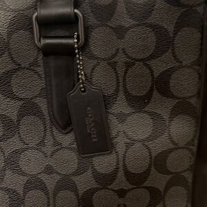 Stylish Coach briefcase with signature monogram. Perfect for business or casual use. Durable and elegant design. Shoulder strap included.