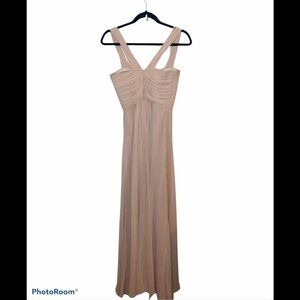 Dessy 2970 blush size 2, new without tags, no visible flaws, may have some dirt marks at the bottom from being trying in at the store. 100% polyester Questions? Leave a comment below!