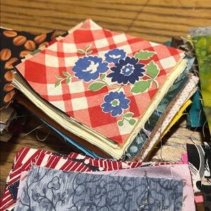 Cotton vintage colorful fabric squares perfect for quilting. Includes vibrant patterns and colors.
