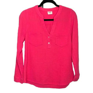 Anthropologie Mote Gauze Cotton Long Sleeve Button V-Neck Lightweight Top Size M