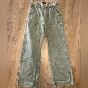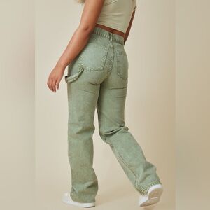 NWOT PrettyLittleThing Olive Green Seam Detail Panel Straight/Wide Leg Jean, 8