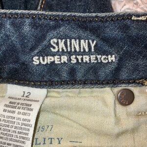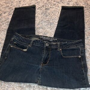 Sleek dark blue skinny jeans. Perfect for everyday wear. Classic American Eagle style.