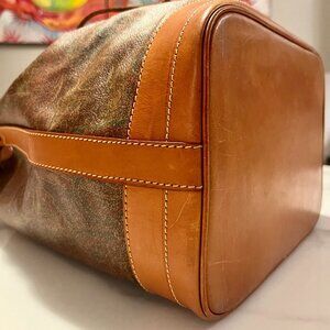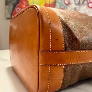 Very good vintage condition. Paisley canvas is beautiful and vibrant. Leather shows minor marks and natural patina consistent with normal wear. Interior is clean and excellent.