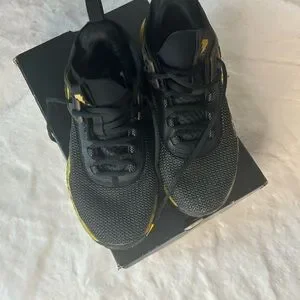 Under Armour Project Rock “Anti Hero” training shoes in black and yellow. Limited edition collaboration with Dwayne Johnson. Great for gym, training, or everyday wear.