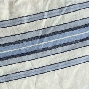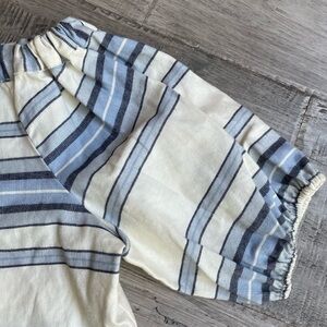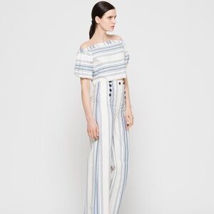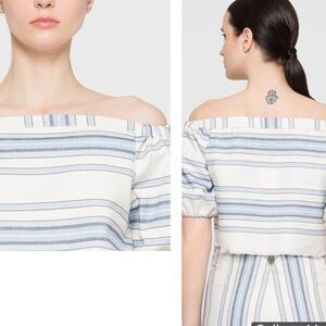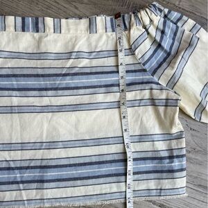 Lemlem Halima Crop Top Striped Off The Shoulder Linen/Cotton Off White/Blue SZ M