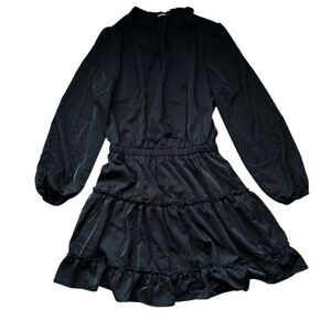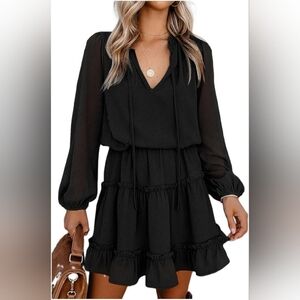 BTFBM Women's V Neck Tie Neck Long Sleeve High Waist Dress Black Size Medium