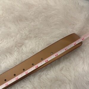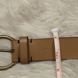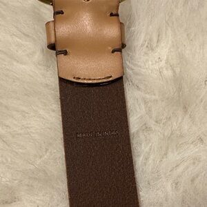 Stylish Frye belt in tan/gold tone leather. Features a bold brass buckle. Ideal for versatile wear NWOT and smoke free home.