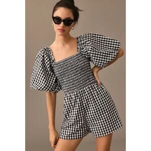 Anthropologie Self Contrast Amadi Gingham Puff Sleeve Romper
