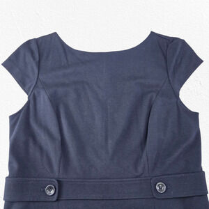 Talbots Navy Sheath Dress Italian Knit Fabric Cap Sleeve Button Waist Size 14