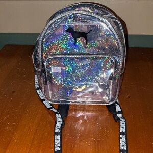 New with tags Victoria’s Secret PINK dog logo sparkly clear mini backpack. Bundle and save!