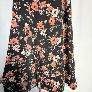 Forever 21 Black and Peach Floral Maxi Skirt with Leg Slit, Women’s Medium