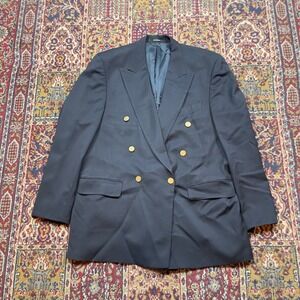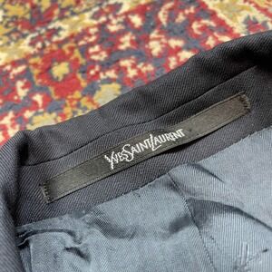 VTG 80s 90s YSL Yves Saint Laurent Navy Wool Double Breasted Suit Coat Gold 52