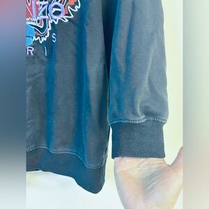Kenzo Paris Black Tiger Graphic Hoodie with Flower Embroidery Size Small
