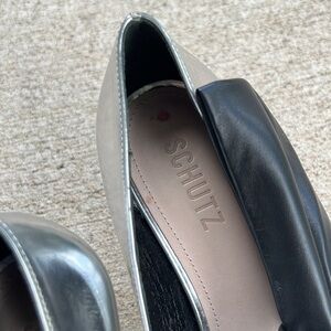 Schutz Havanna Silver Black Bow Heels size 7