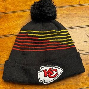 New Era Kansas City Chiefs Beanie Hat Black Red Yellow Pom NFL Knit Cuffed Cap