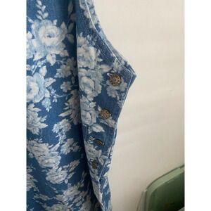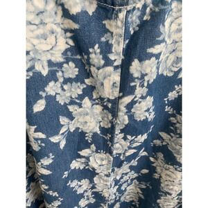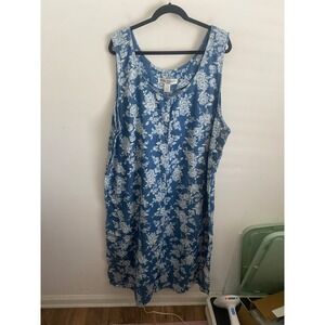 Blue Floral Cotton Denim Sleeveless Jumper Dress Plus Size 2X