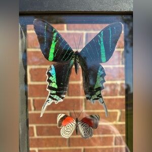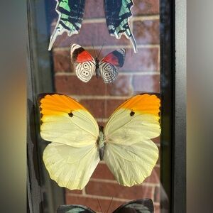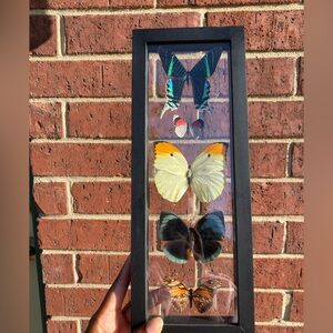 Wall hanging display featuring five different butterfly species. Ethically sourced from Peru.